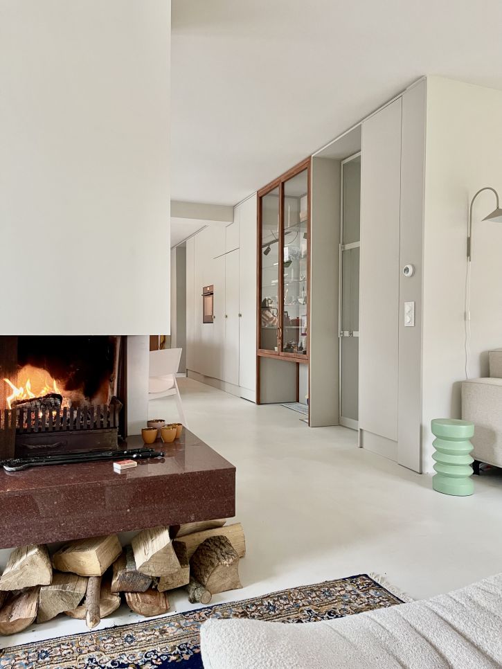 Ruime leefkeuken uitgevoerd met stalen taatsdeuren ,mat afgewerkt .