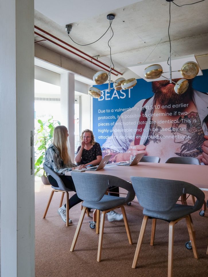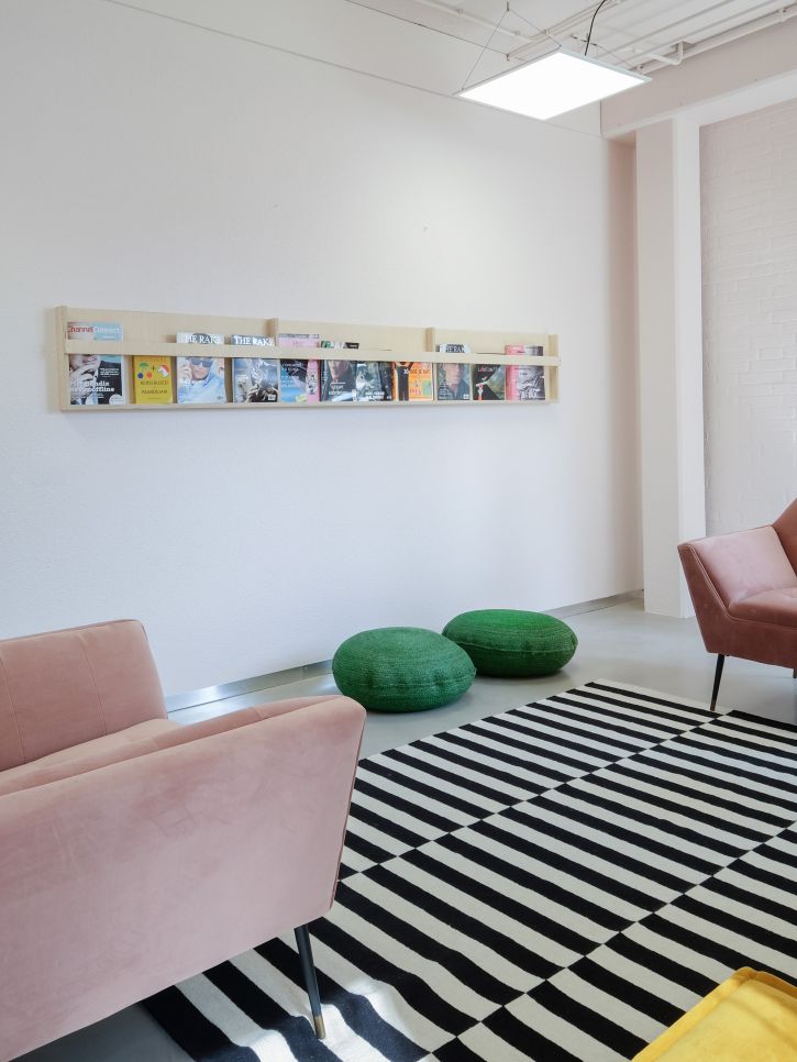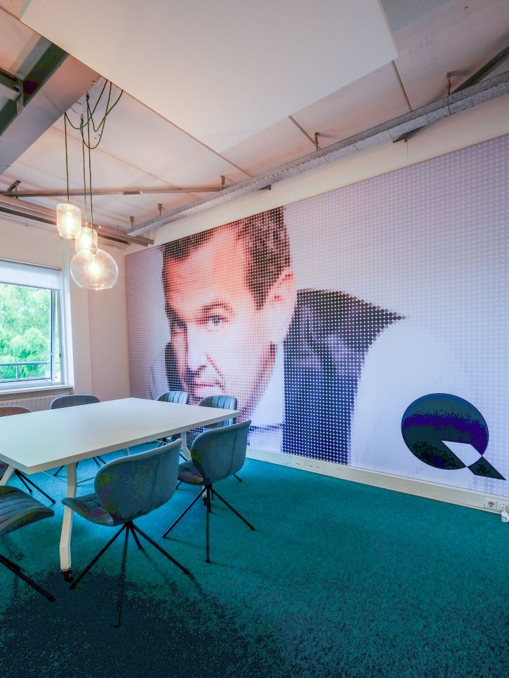 Qbit zorgt voor digitale beveiliging: hightech en efficiënt. Wij mochten hun kantoorpand in Groningen compleet restylen. Met behoud van het huidige meubilair maakten we onder meer een sportsbar waar je kunt pingpongen en flipperen en een testcentre.